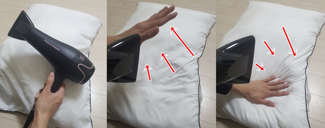 시간이 오래 걸리지 않아요~ 저는 베개 앞 뒤로 2분 정도 걸렸습니다.