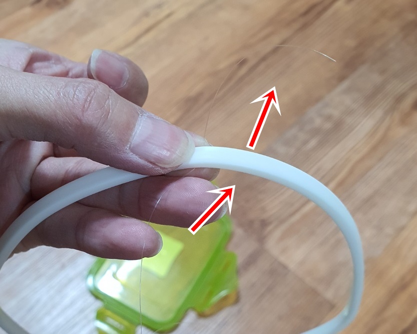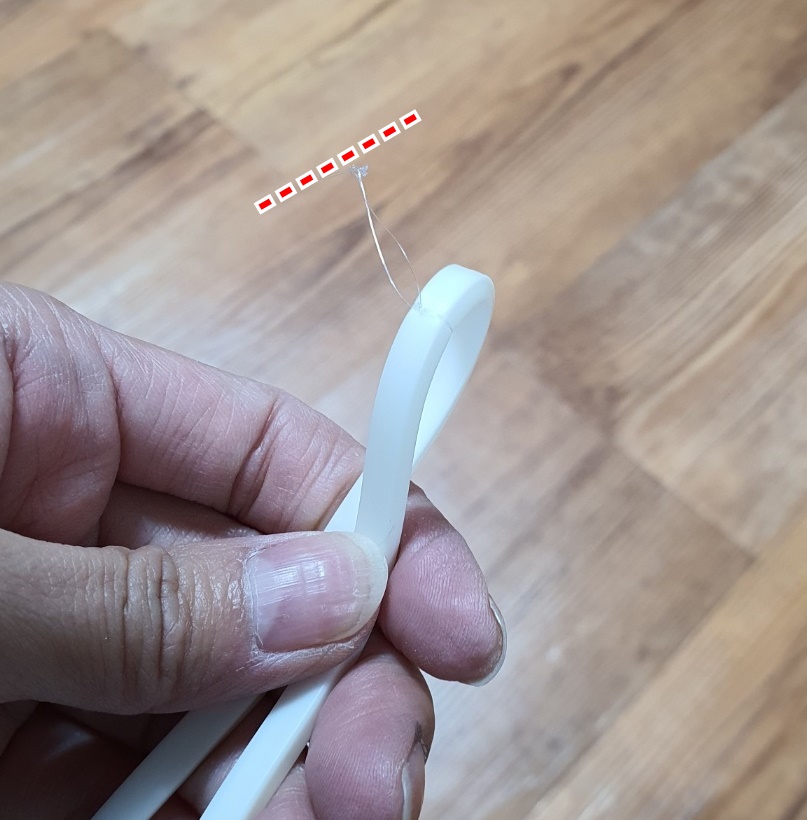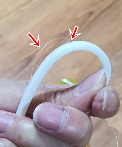 고무패킹 아래쪽으로 낚싯줄을 넣어주세요.