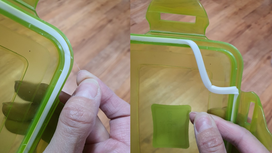 그럼 낚싯줄 사용해서 반찬통 고무패킹 편리하게 사용하세요^^