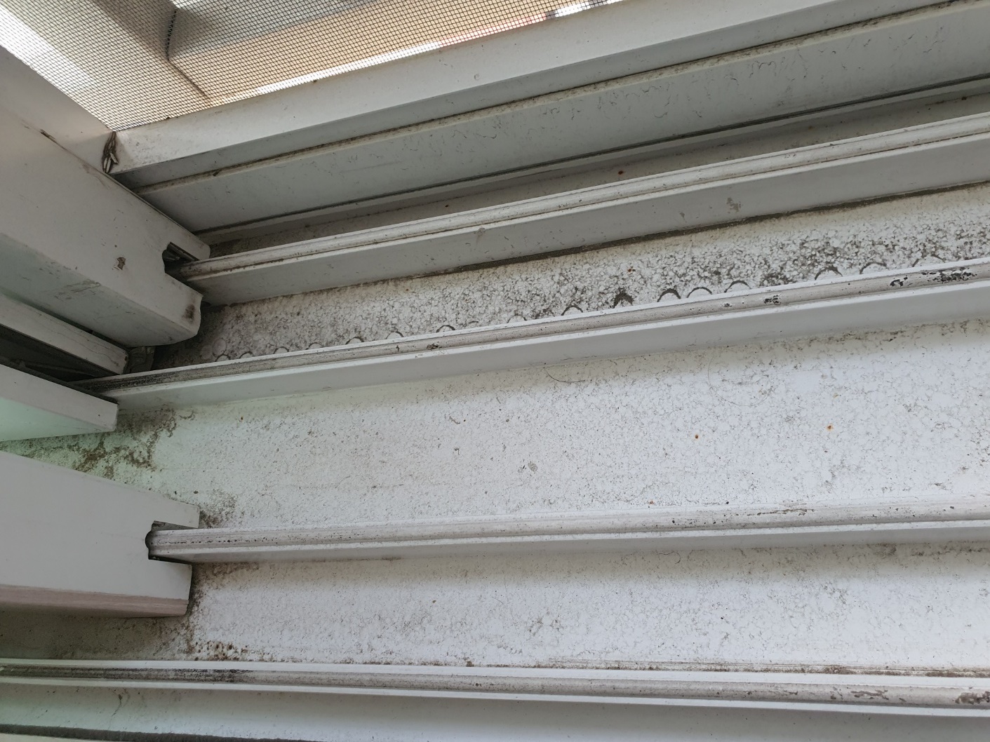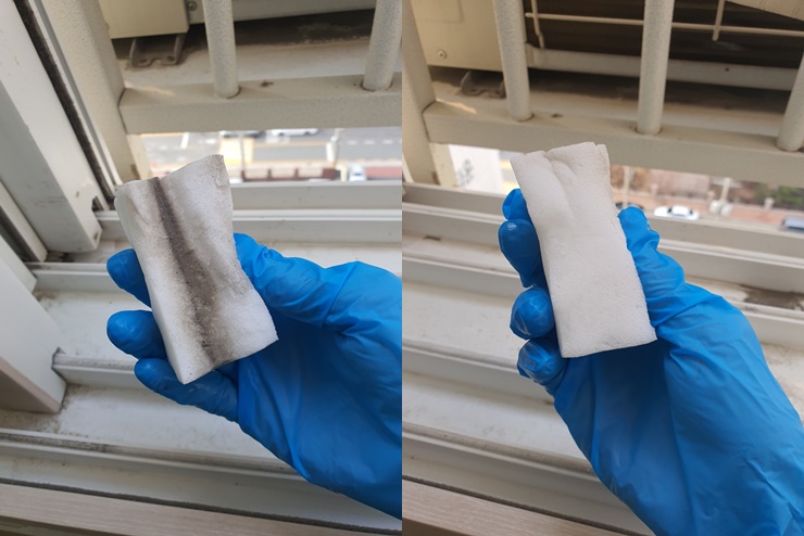 청소 전 창문틀을 보면 오염이 심한 상태인데요.
