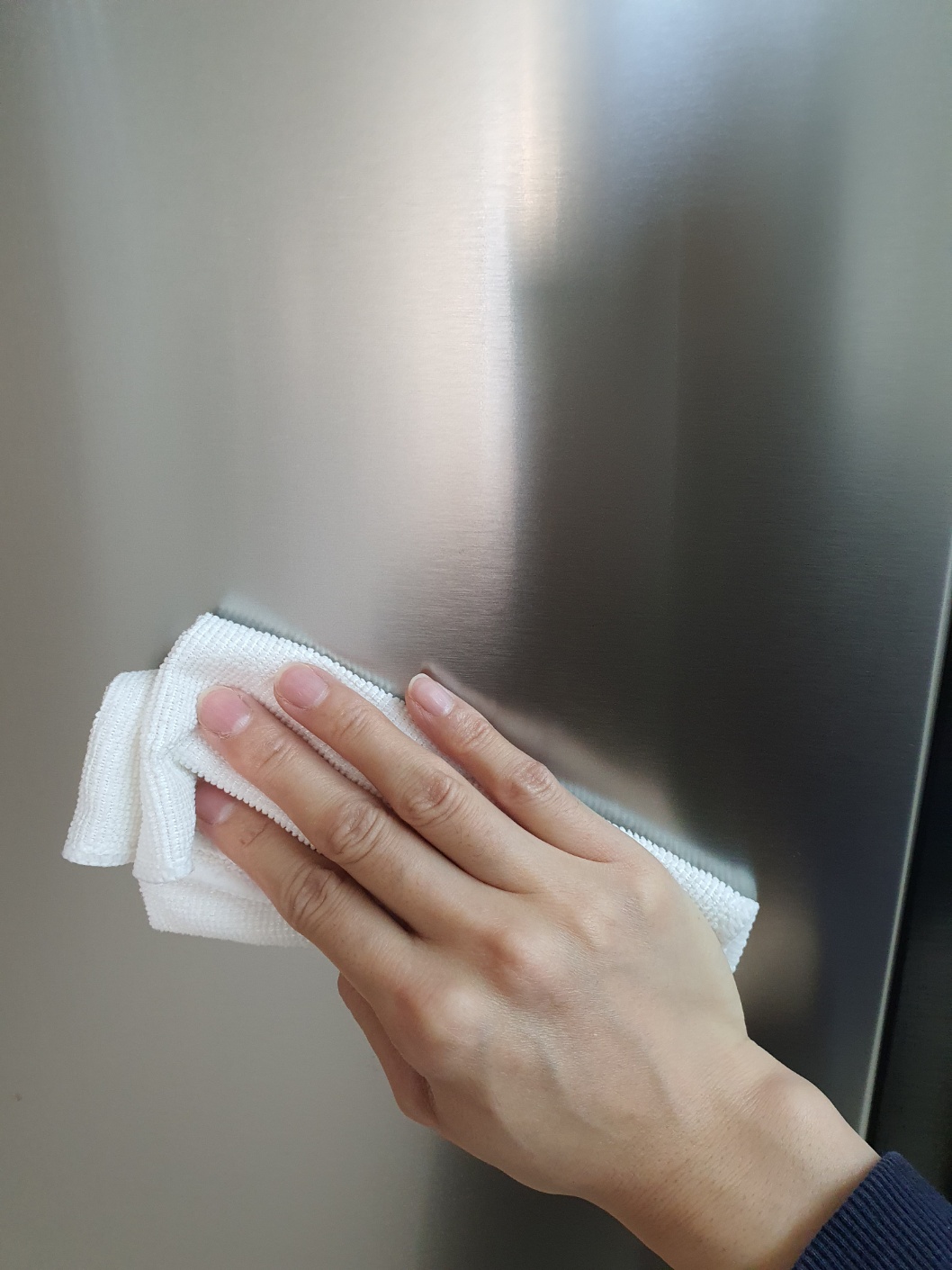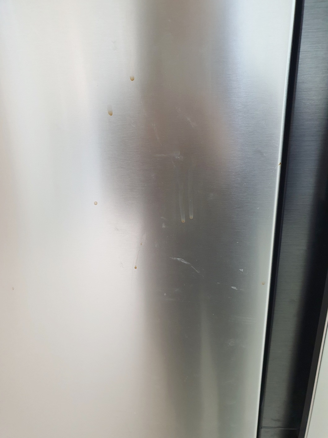 그리고 냉장고 얼룩을 위에서 아래로 닦아 내려줍니다.