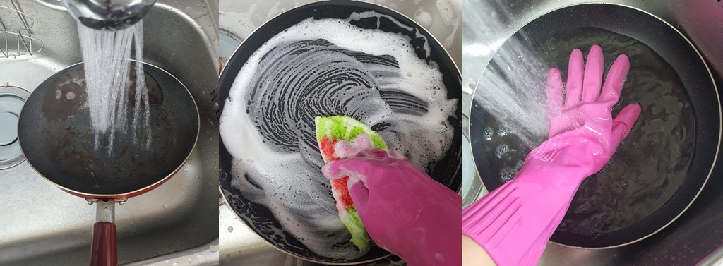 5. 그다음 세제를 사용해 수세미로 가볍게 문질러
