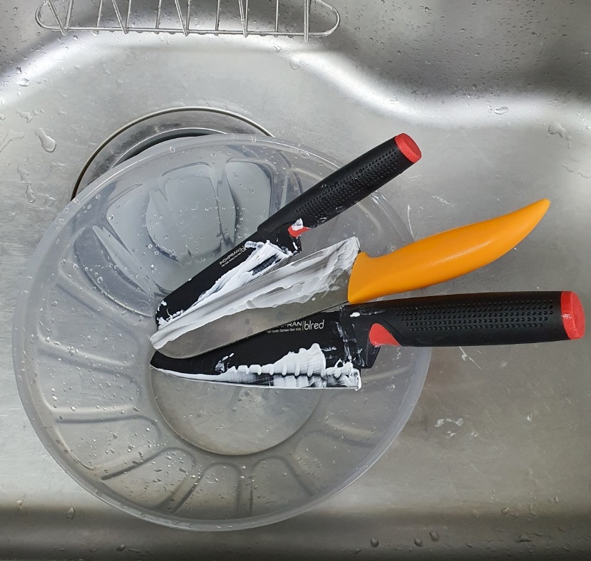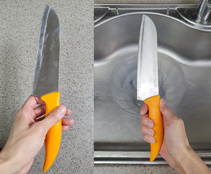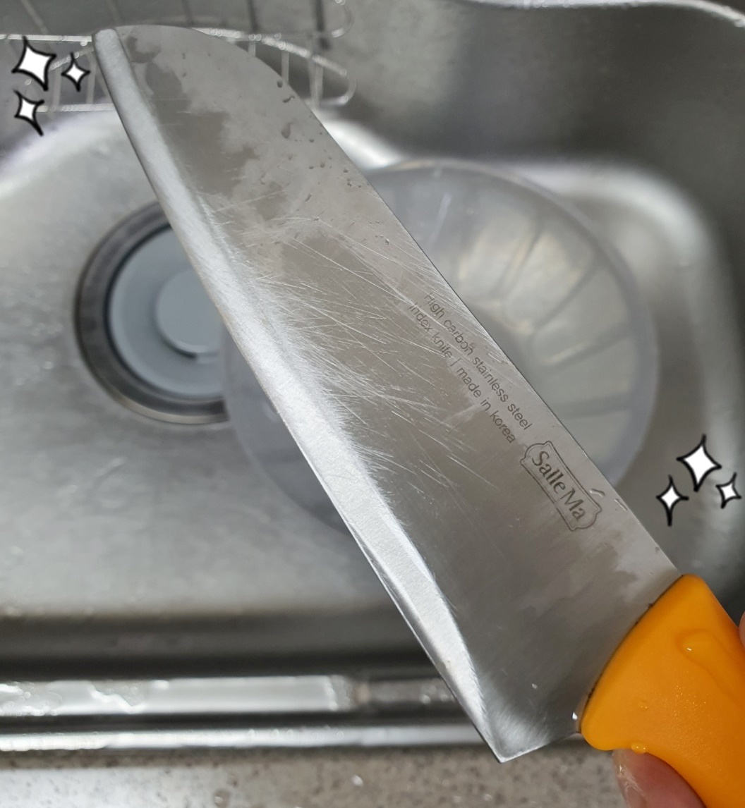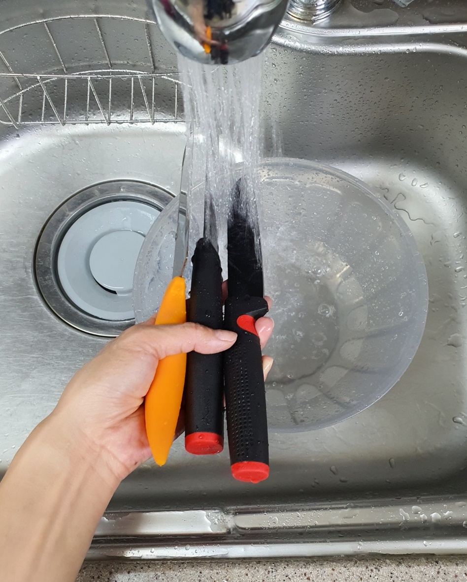 5. 그리고 다 간 칼은 깨끗한 물에 헹궈줍니다.