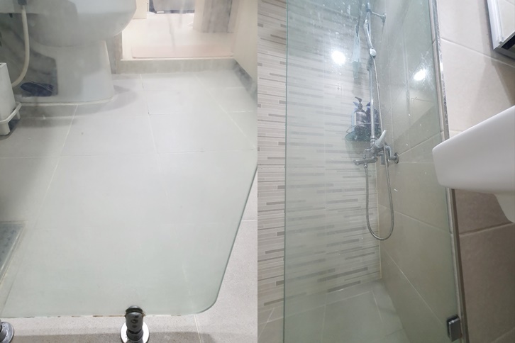 샤워부스 청소가 끝이 났습니다.