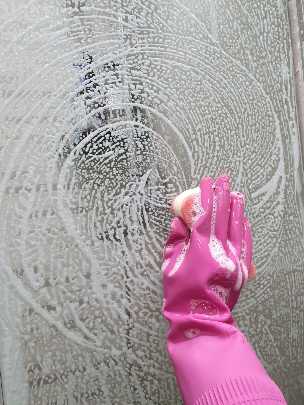 2. 세제물을 수세미에 묻혀 샤워부스를 앞 뒤로 닦아주세요.