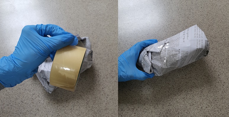 2. 테이프로 신문지를 밀봉합니다.