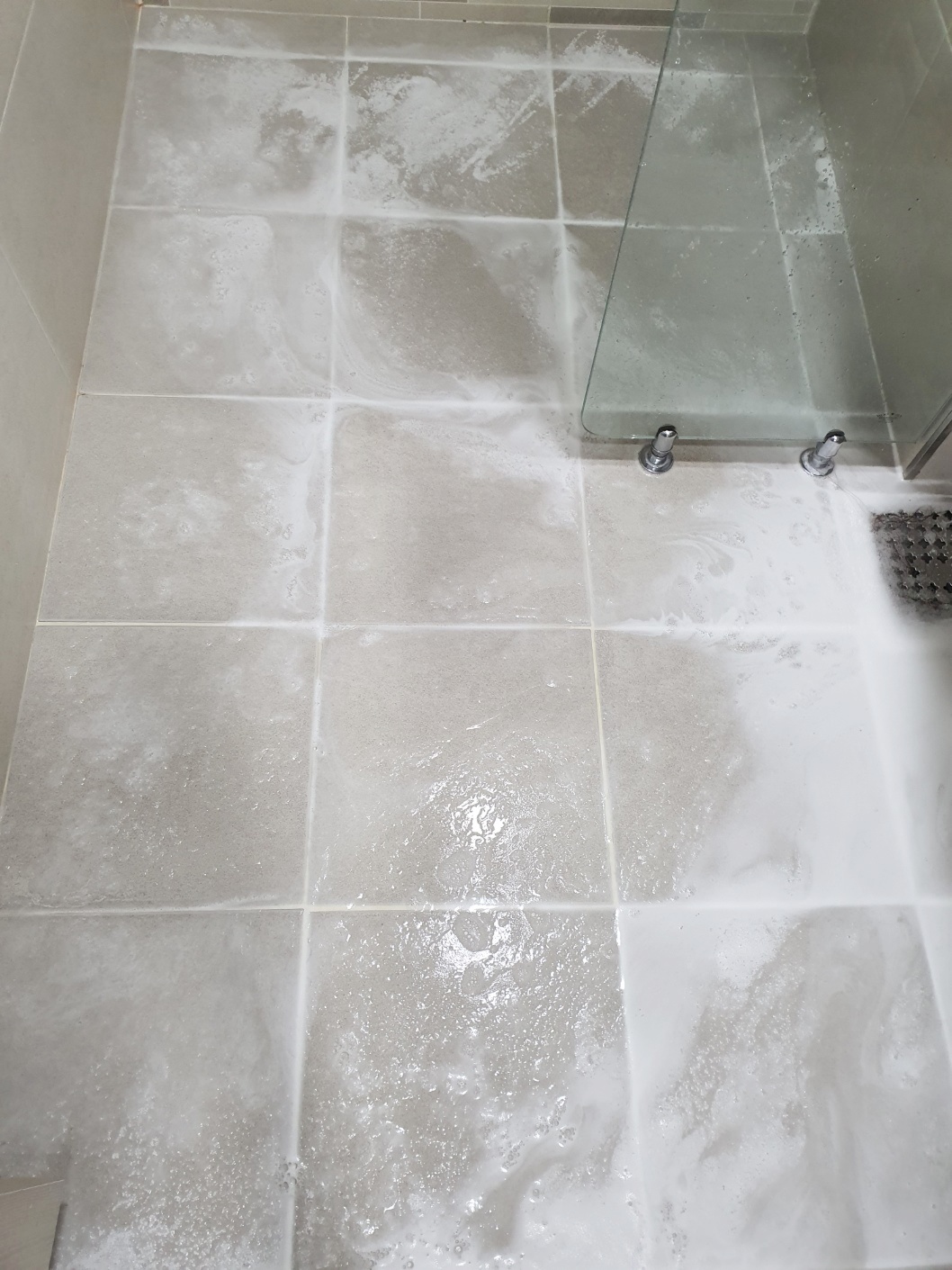 욕실 문을 활짝 열어 바닥을 건조합니다.