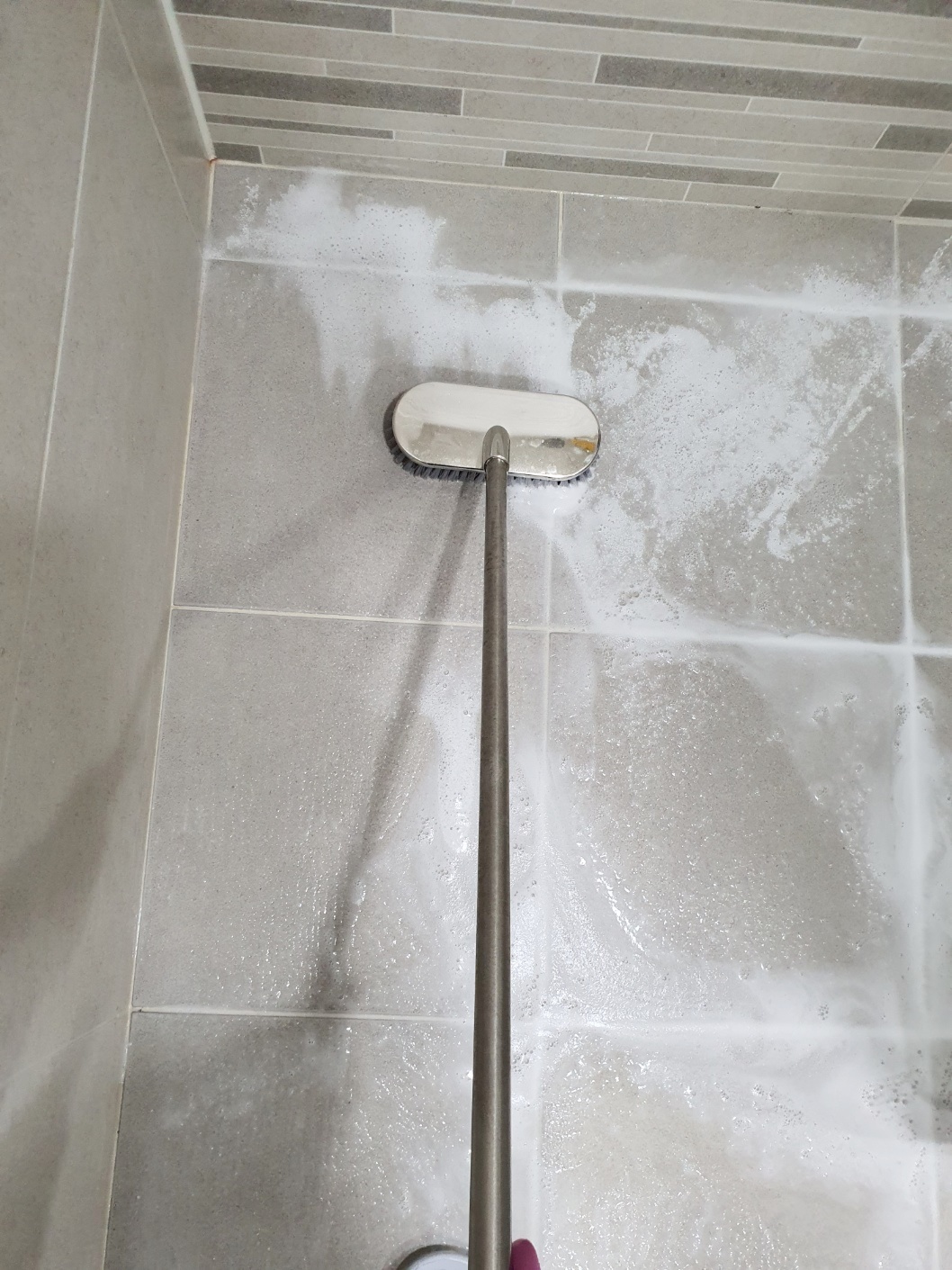 5. 10분 후 솔을 사용해 바닥을 골고루 문질러 줍니다.