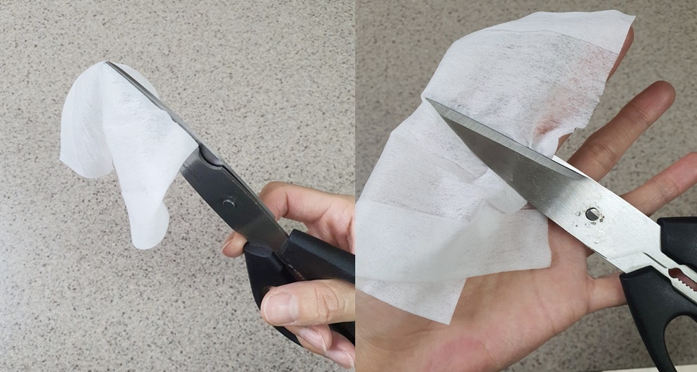 물티슈를 잘라도 아예 들지 않는 상태입니다.