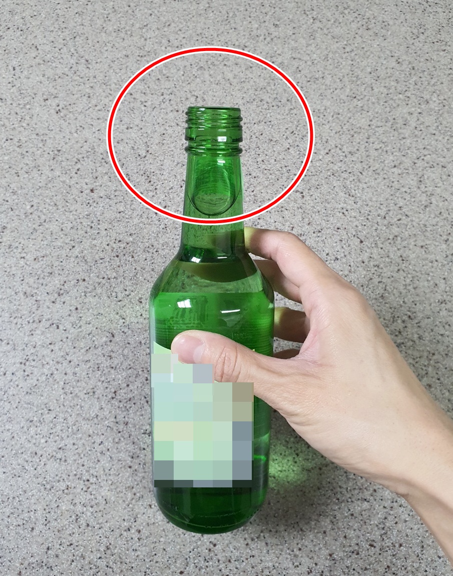 이럴 때는 소주병 윗부분에 가위를 갈아주시면 되는데요.