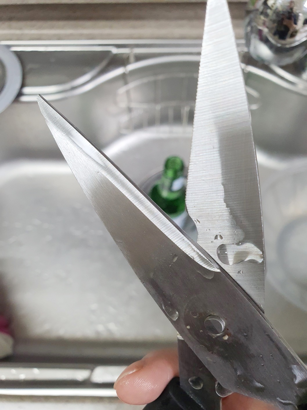 이럴 때는 소주병을 사용해 가위를 갈아보세요.