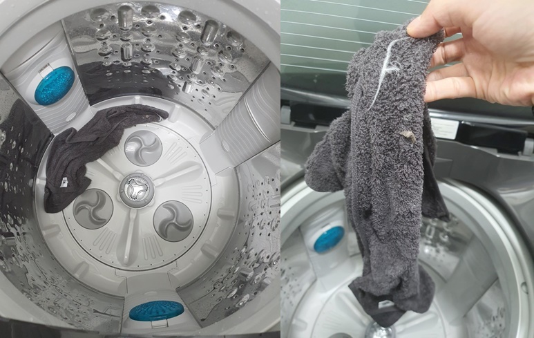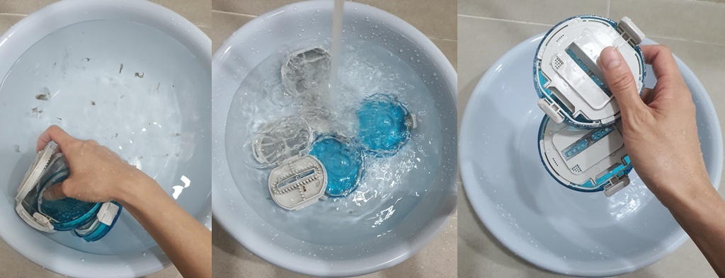 곰팡이와 먼지가 둥 둥 떠 있어 때가 잘 불려지고 있는 것을 확인할 수 있습니다.