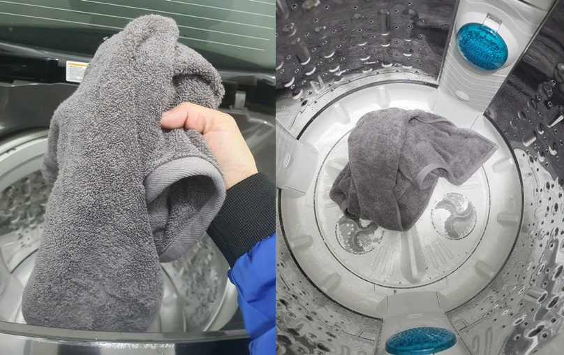 2. 수건 한 장 넣어줍니다.
