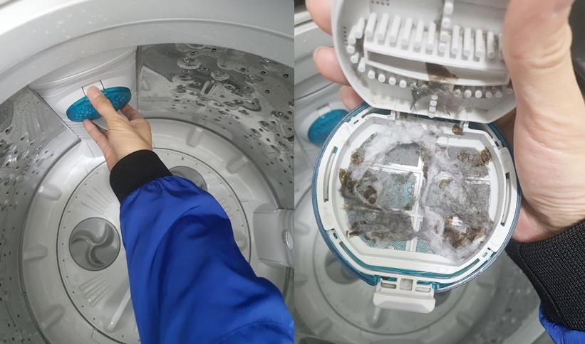 6. 거름망을 다시 세탁기에 끼워줍니다.