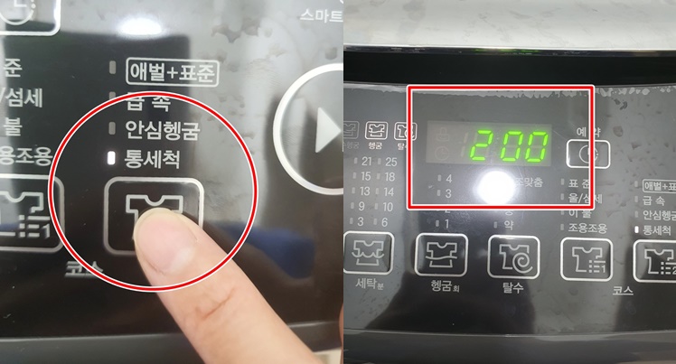 3. 세탁 코스에 통세척을 눌러 청소를 시작합니다.