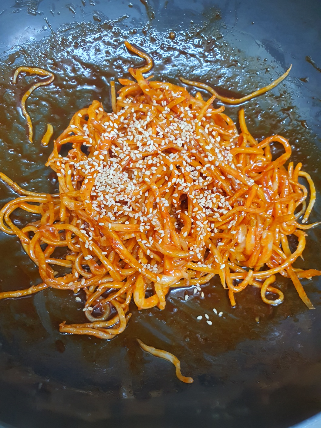 마지막으로 통깨를 뿌려 접시에 담아주세요.