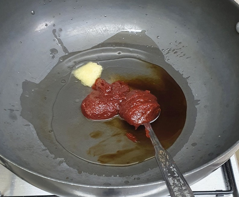 1. 프라이팬에 식용유 2t, 고추장 2t, 물엿 2t,