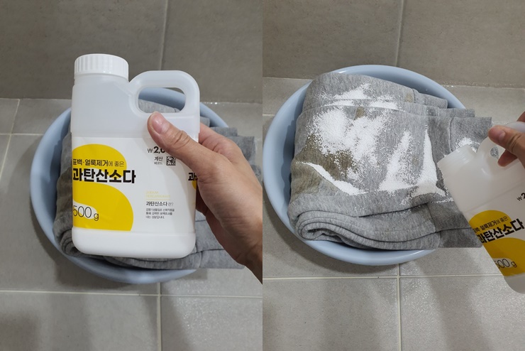 옷에 생긴 얼룩을 제거할 때는 과탄산소다를 사용해 보세요!
