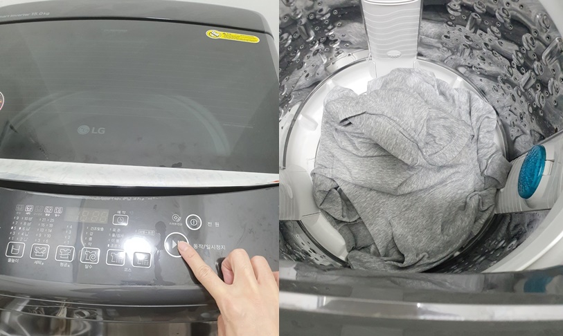 6. 때를 다 불린 옷은 세탁기에 넣어주세요.