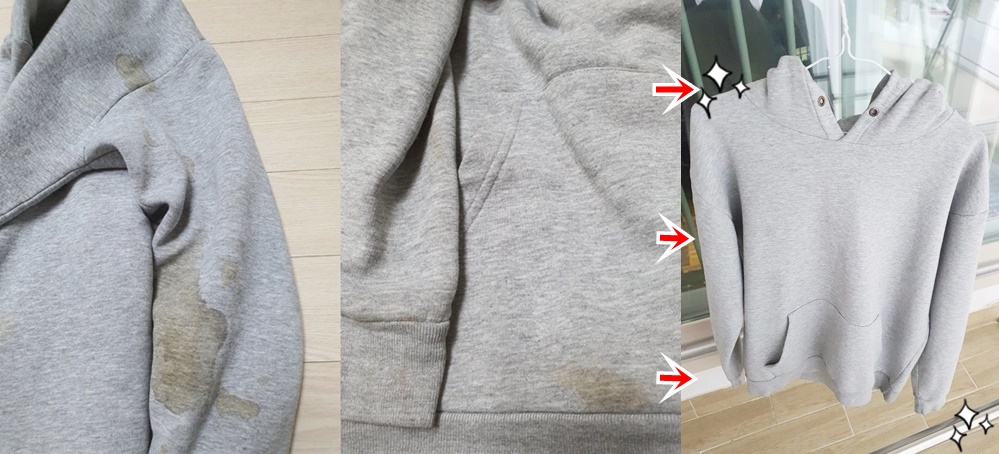 커피자국이 깨끗하게 지워진 것을 볼 수 있습니다.