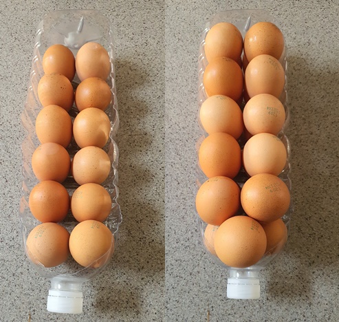 2. 잘라준 페트병에 계란을 차곡차곡 넣어주세요.