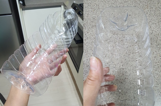 1. 페트병 윗면을 가위로 잘라줍니다.