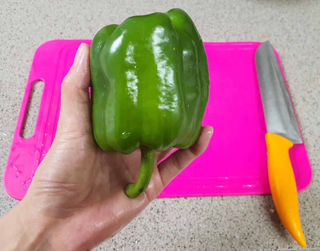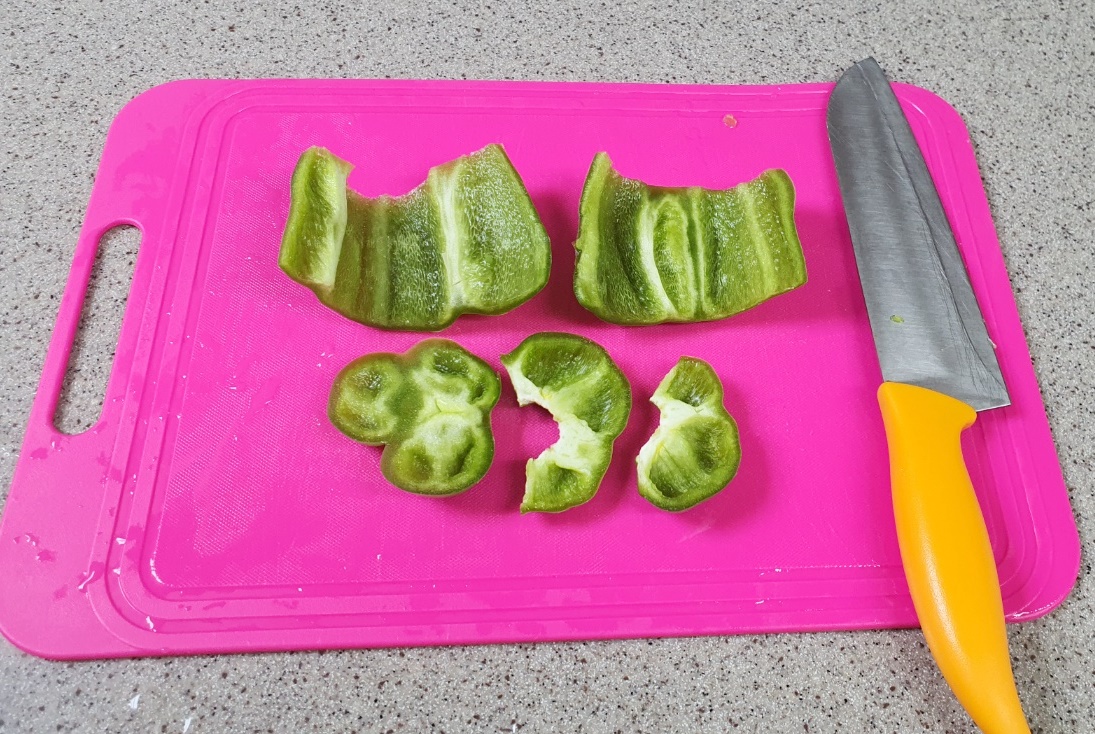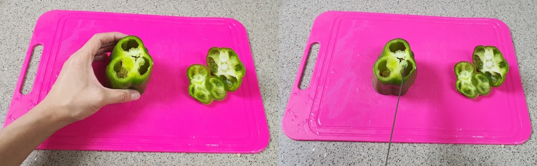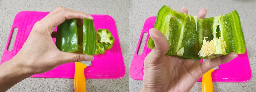 3. 그다음 피망을 활짝 펼쳐주시고요.