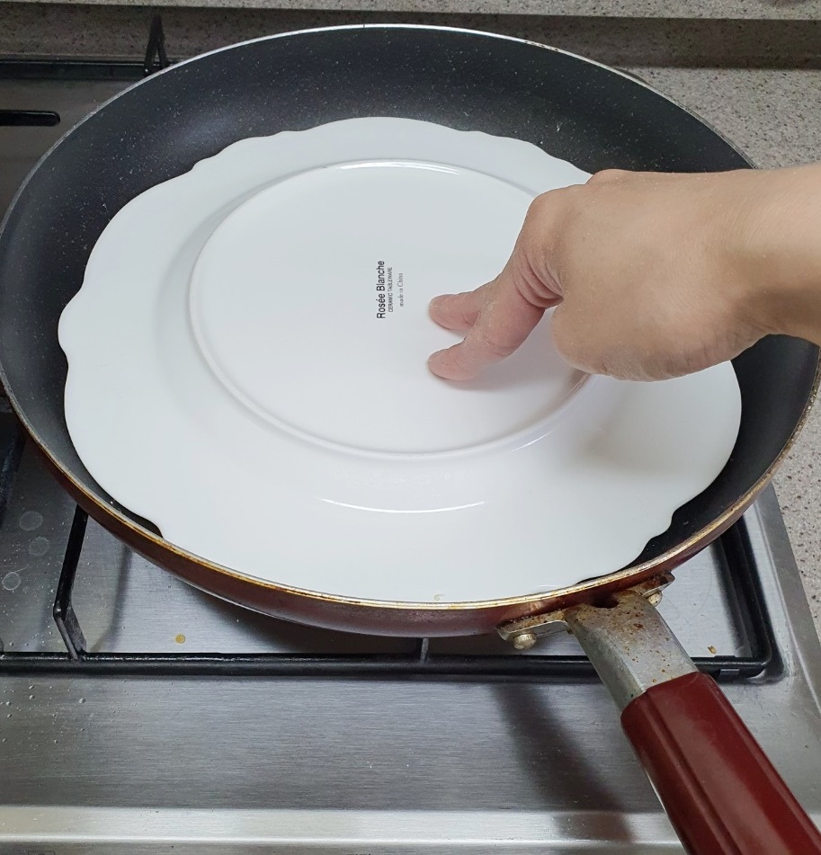 부침개를 담을 접시를 전 위에 올려줍니다.