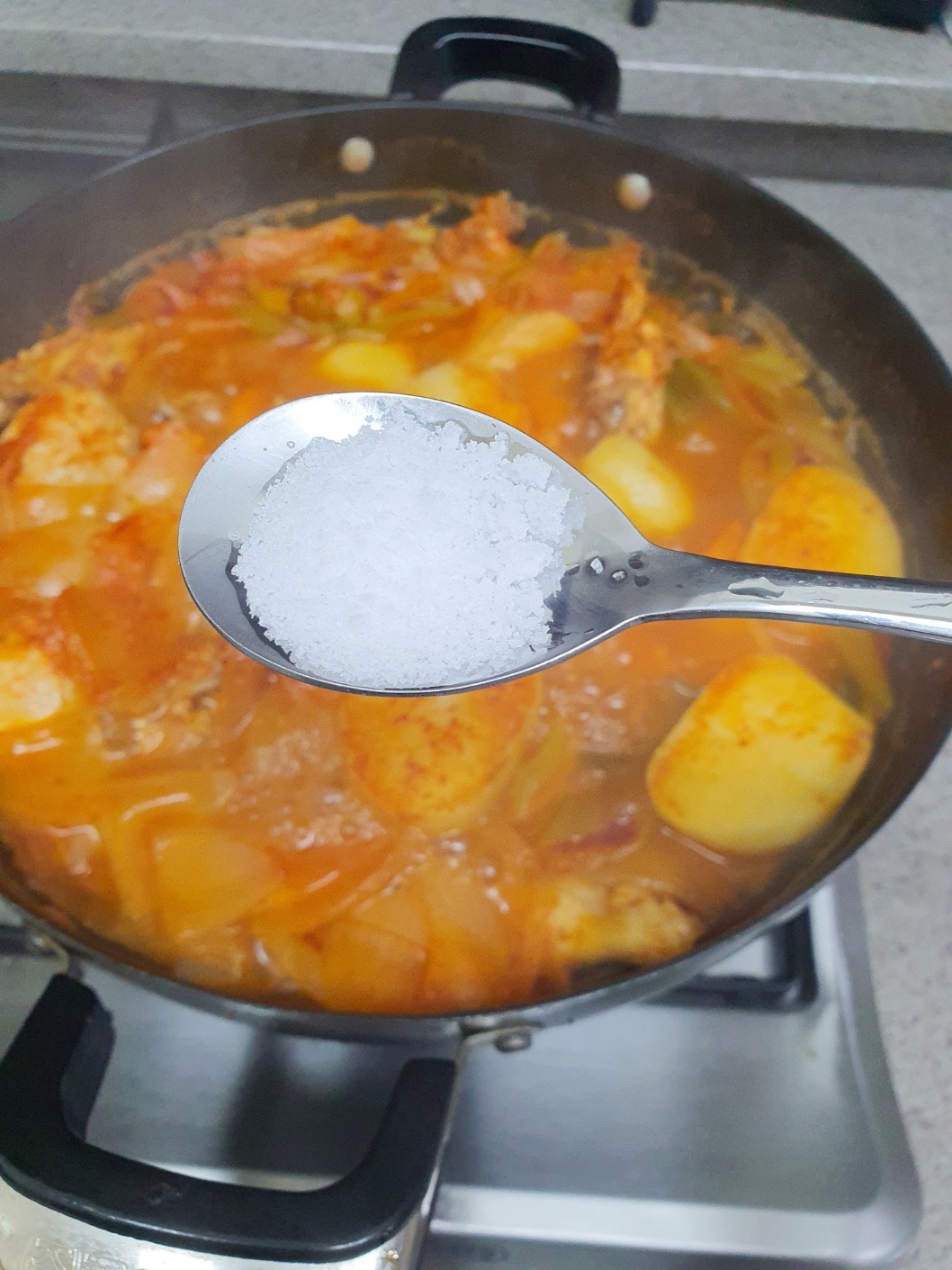 9. 맛을 보아 굵은소금을 넣어가며 간을 맞춰줍니다.