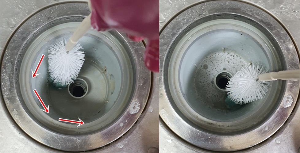 아래쪽 배수구도 솔을 넣어