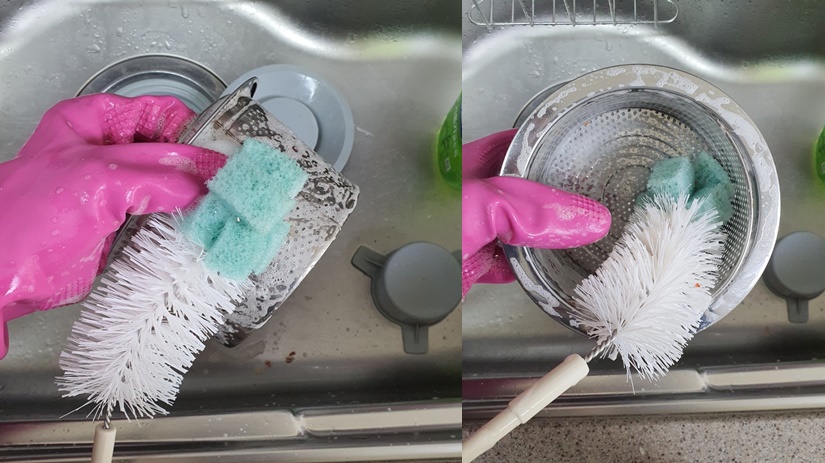 거름망도 솔에 주방세제를 묻혀 골고루 닦아주세요.