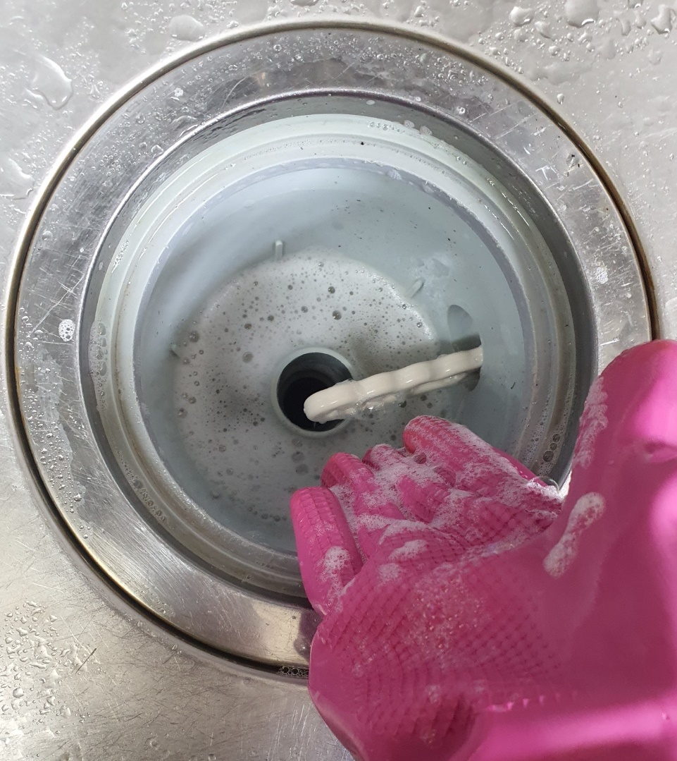 하수구 속을 빙 둘러 오염 때를 가볍게 문지릅니다.