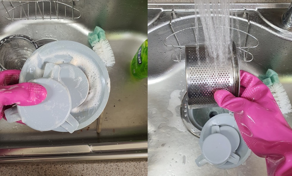 거름망도 솔에 주방세제를 묻혀 골고루 닦아주세요.