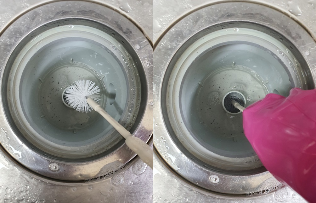 아래쪽 배수구도 솔을 넣어