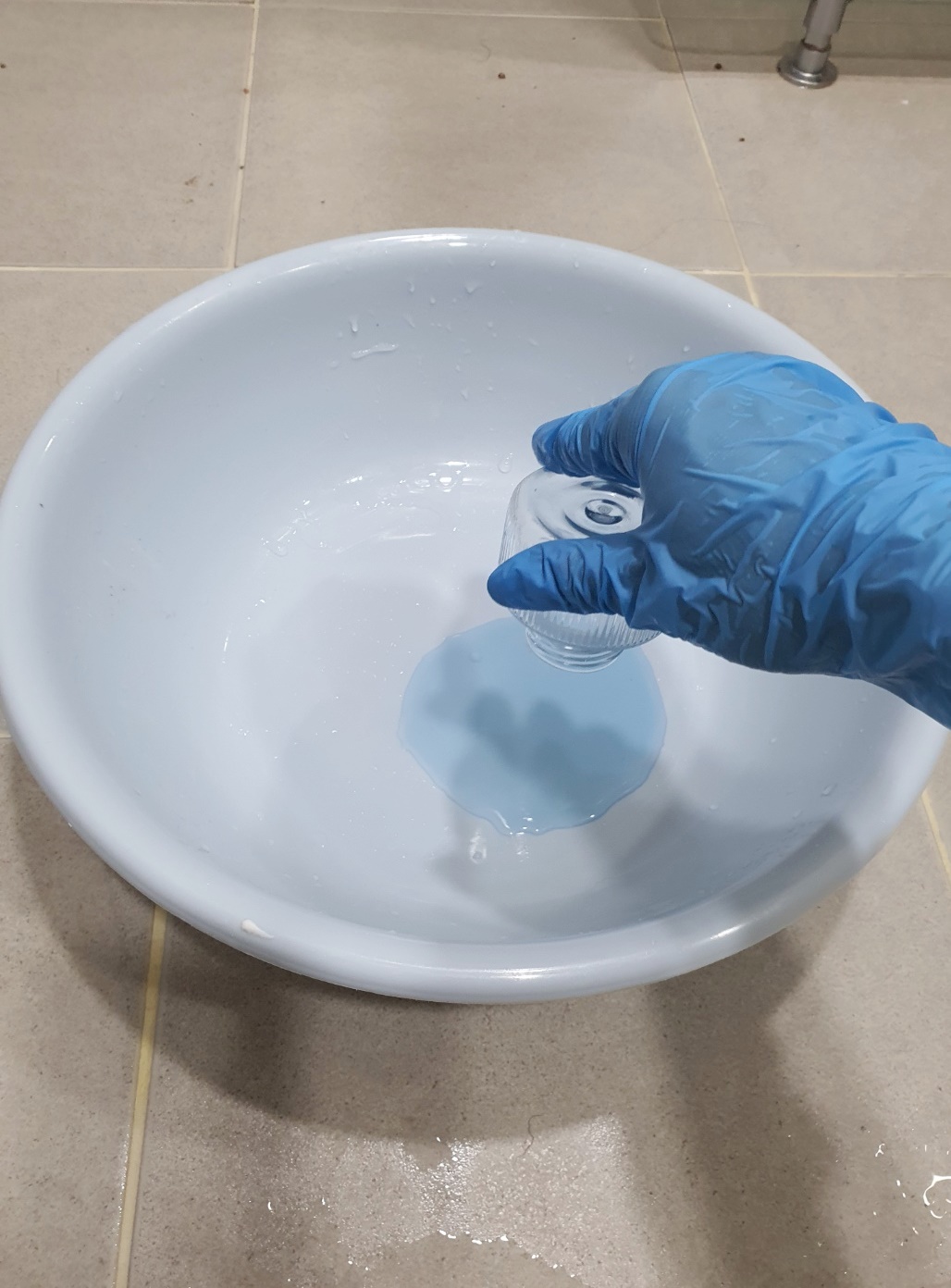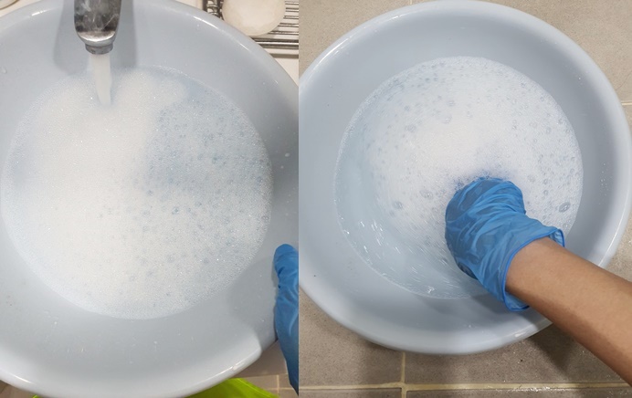 4. 물을 다 받았다면 세제물에 솔을 담가