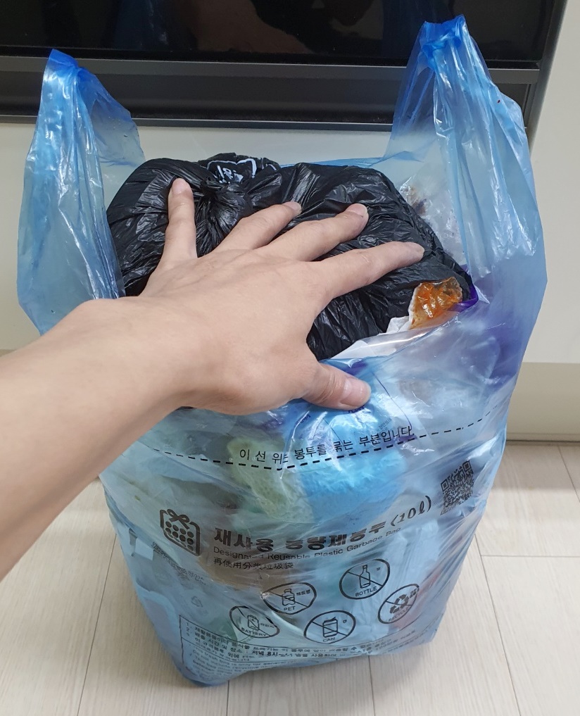그럼 종량제 가득 찼을 때 쉽게 묶어서 배출하세요^^