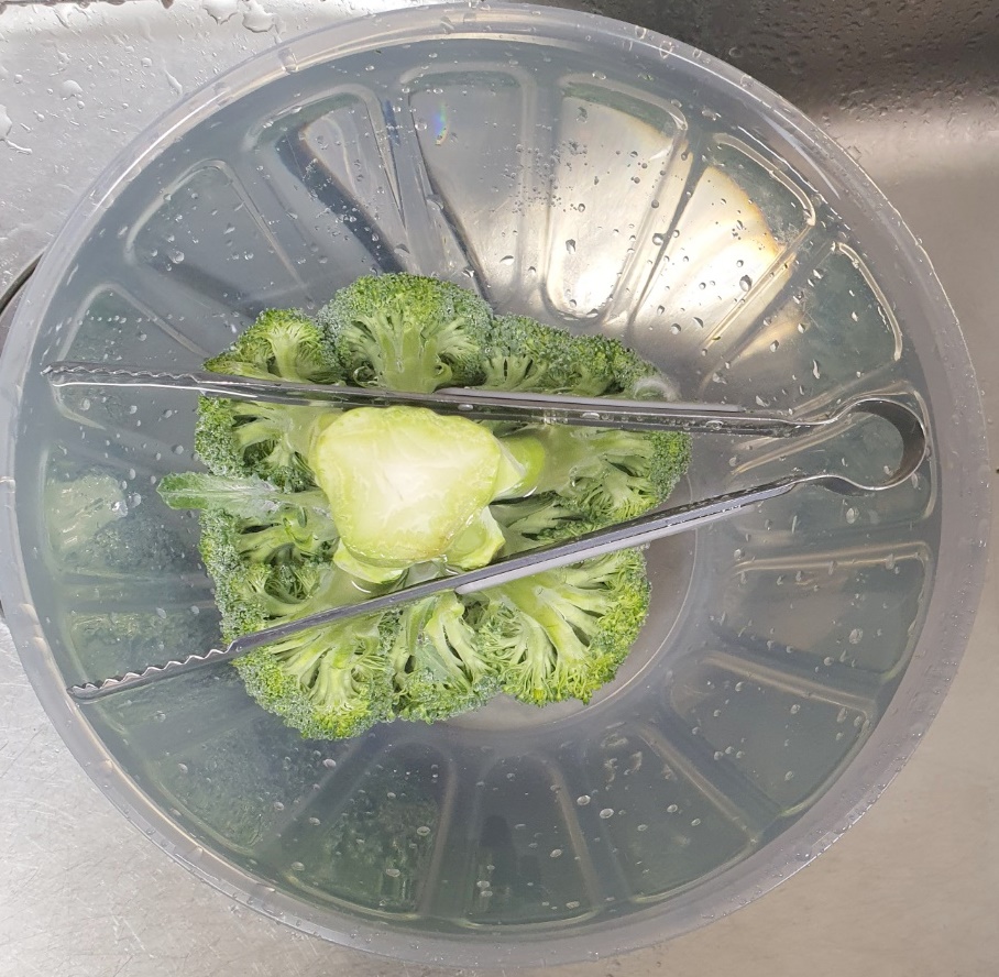 그리고 집게를 사용해서 브로콜리 줄기에 끼워준 다음에