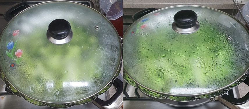 브로콜리에서 나온 기름때도 둥둥 떠 있는 것을 확인할 수 있습니다.