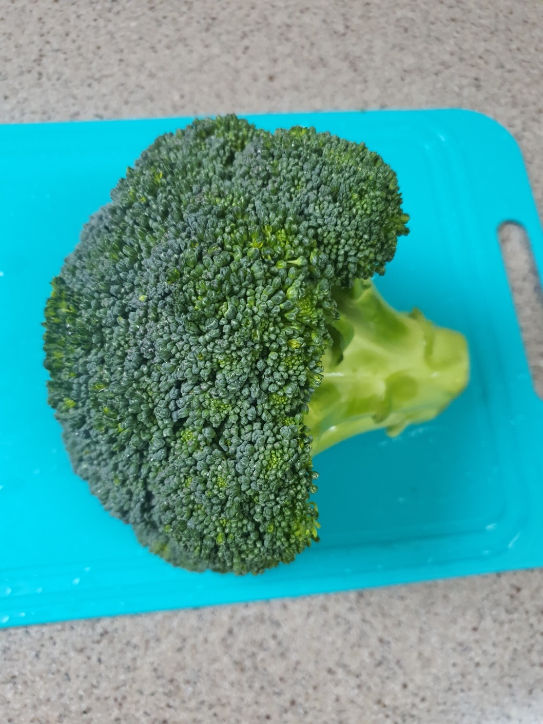 깨끗하게 세척한 브로콜리는 도마에 올려주시고요.