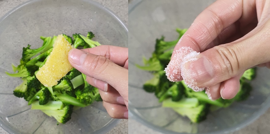 특히나 브로콜리는 표면에 기름막으로 형성되어 있기 때문에