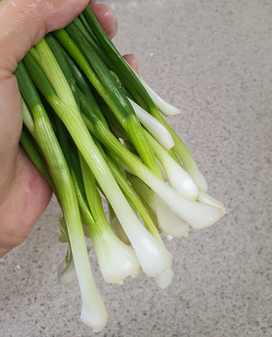 쪽파 한 줌 껍질을 벗겨 깨끗한 물에 씻어서 준비해 주시고요.
