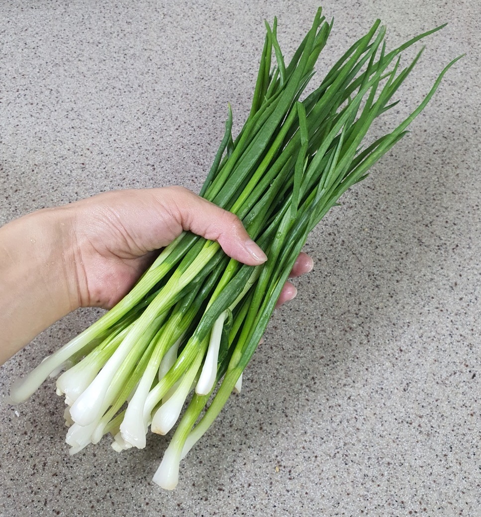 쪽파 한 줌 껍질을 벗겨 깨끗한 물에 씻어서 준비해 주시고요.