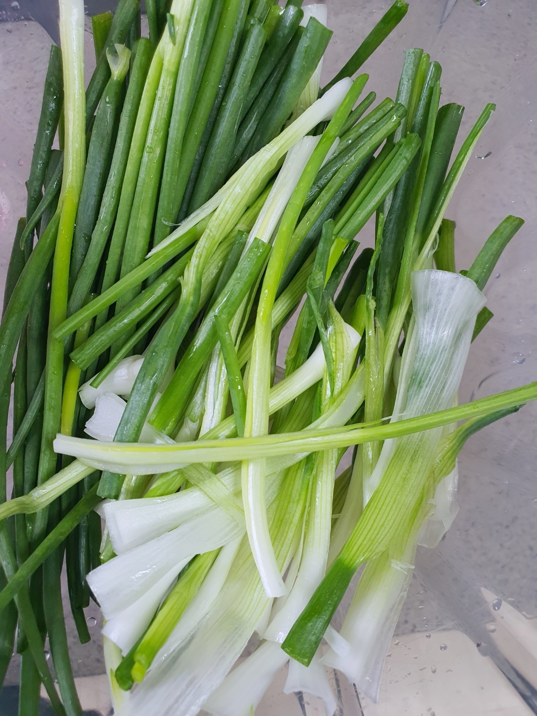 쪽파를 자르지 않고 바로 무치면 너무 길고