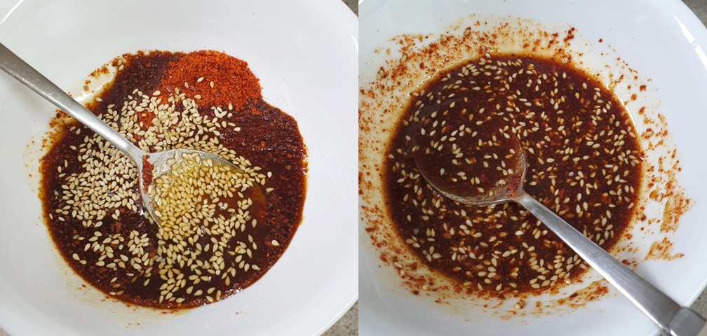 ▶ 고춧가루 1T, 진간장 2T, 멸치액젓 1T,