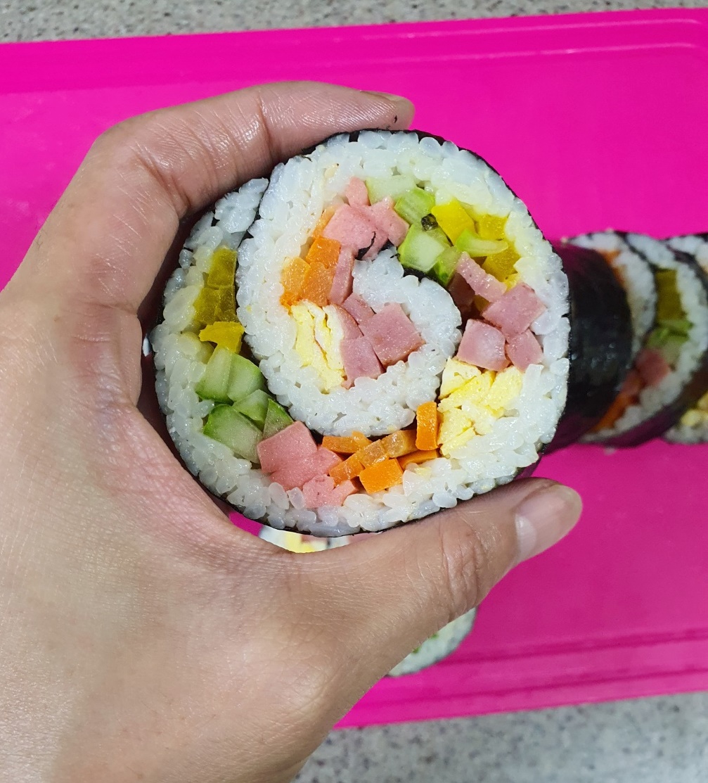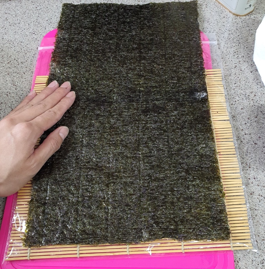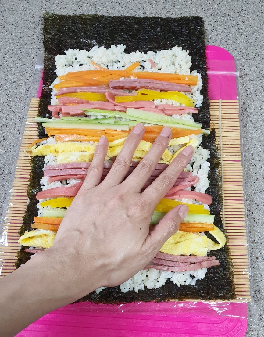 저는 양손으로 김밥을 마는데