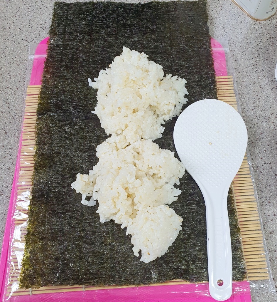 재료가 다 밀려 회오리김밥을 만들 수 없기 때문입니다.