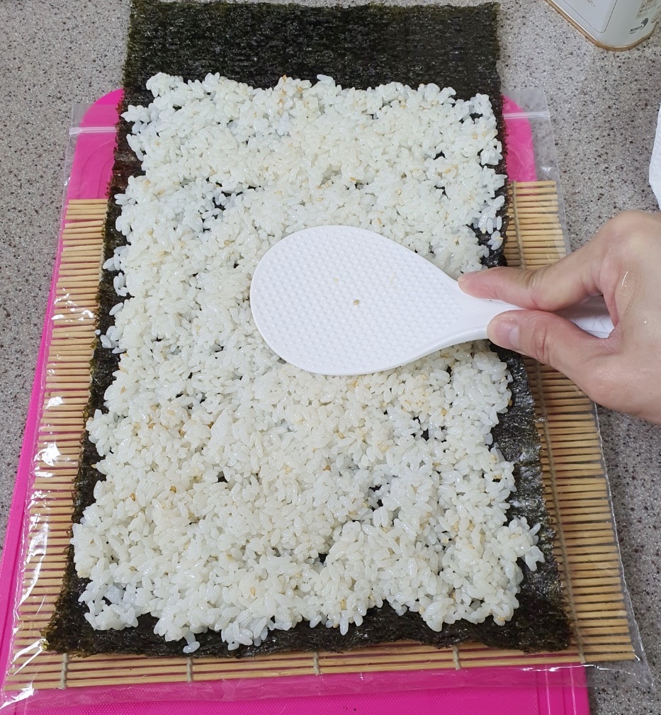 주걱을 사용해 밥을 넓게 펼쳐주시고요.