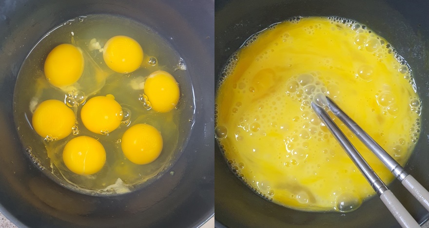 계란 7개를 깨 줍니다.