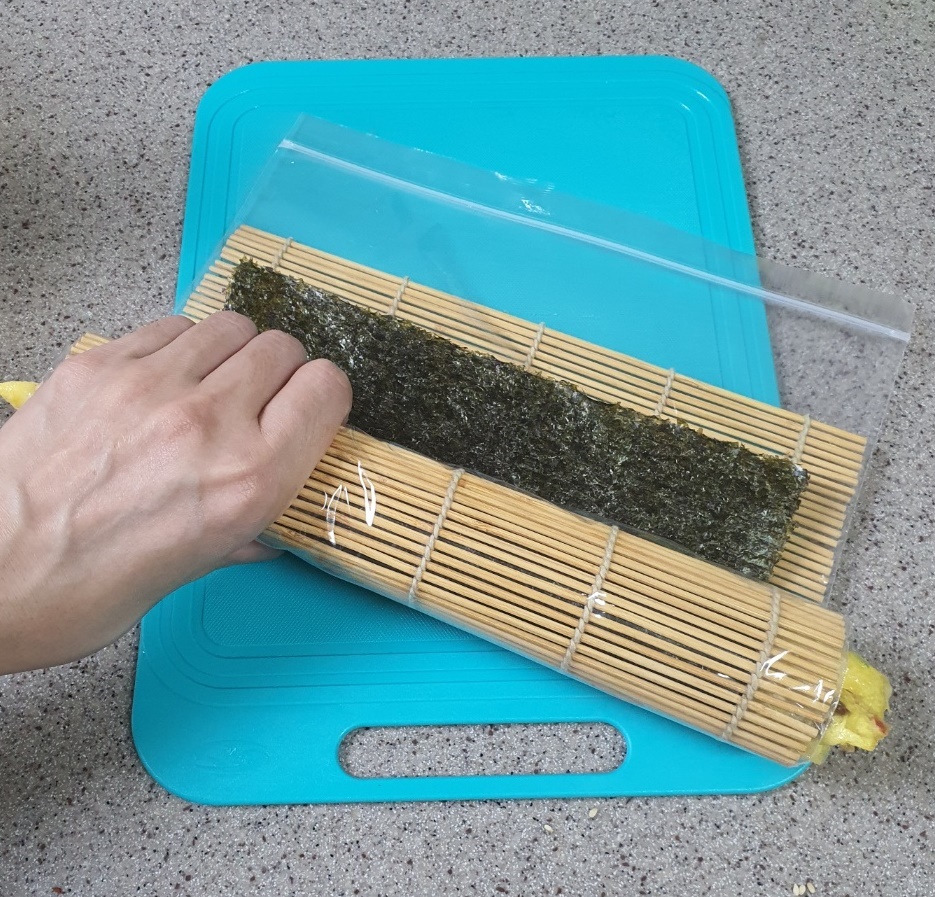 그리고 손으로 한번 김밥을 가볍게 싸 준 다음