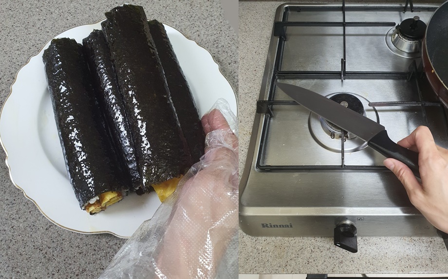 저는 이번에 불에 달궈서 김밥을 썰어주었습니다.